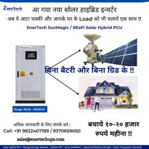 आटा चक्की और घर दोने के लिए EnerTech सोलर हाइब्रिड इन्वर्टर बिना बैटरी और बिना ग्रिड के चलाये !!