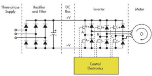 Refer above static voltage stabilizer circuit diagram, A static frequency converter has a rectifier and an inverter that helps convert the fixed line voltage from AC to DC and DC to AC. It converts the mains voltage (50 Hertz or 60 Hertz, 120V-600V) to a particular DC voltage based on the topology and design options. Thus, the DC becomes the inverter’s supply that converts DC to AC.