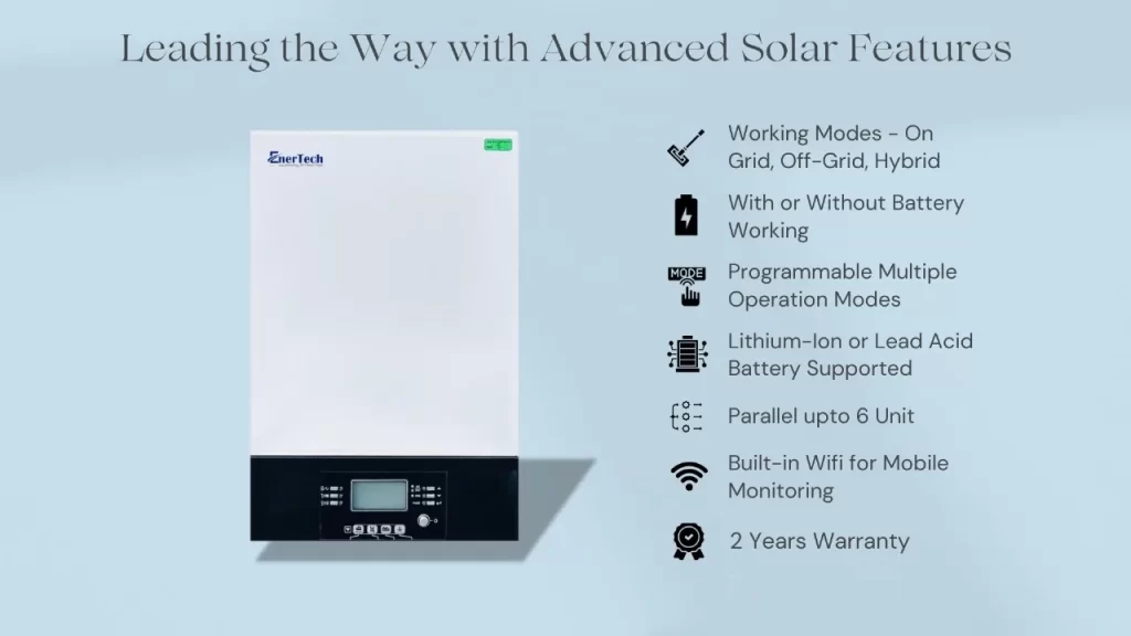 EnerTech solar off grid inverters are advanced and reliable solutions that provide power in off grid and remote locations, and they come with a wide range of features that make them suitable for various applications.